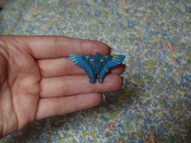 I've got a growing selection of Zo's brooches and have come to the decision that you can never have too many. This blue butterfly is lovely and will look great on my new denim jacket alongside my ampersand brooch.
